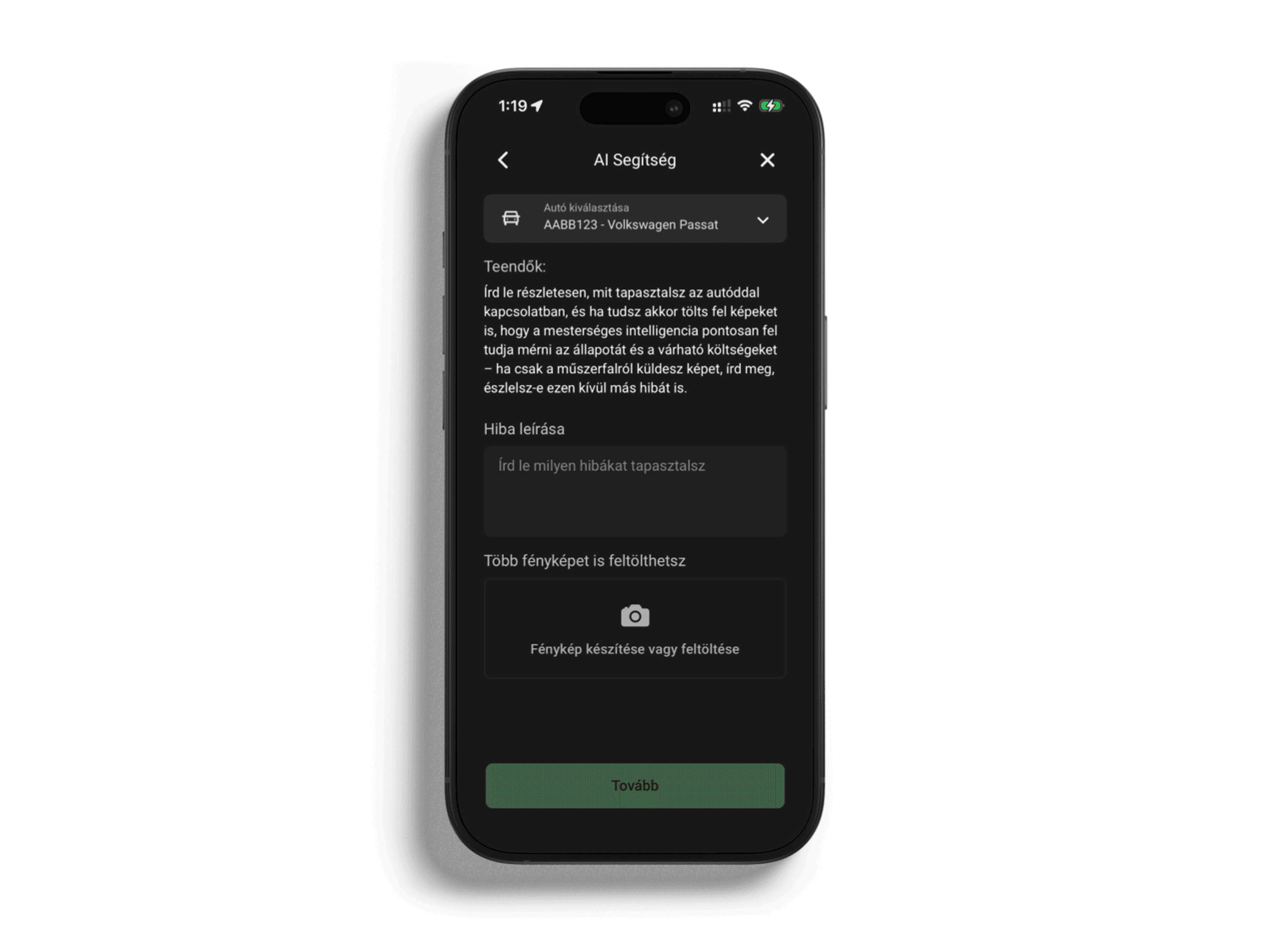 fotó alapján felismerni a problémát, legyen szó műszerfal visszajelzésről, külső sérülésről, kopásról, gumiproblémáról és sok másról.